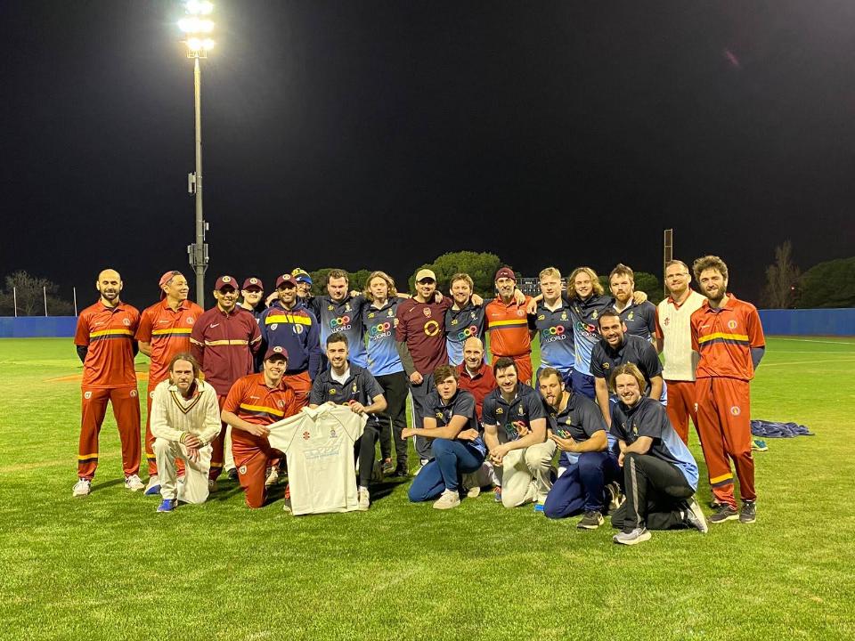 Scorecard A warm and overcast day greeted the players at Vic, arriving punctually, only to have the start delayed due to a missing hessian wicket. A search round the perimeter by Shane and Vishesh (Mishmash to his mates) found nothing but overgrown grass and discarded confetti from the previous night at the festival next door occupying the old Vic. Off went our indigenous tracker, Sam, into the bush to see what he could find with his sixth sense of knowing where to go he found an alternativ[...]